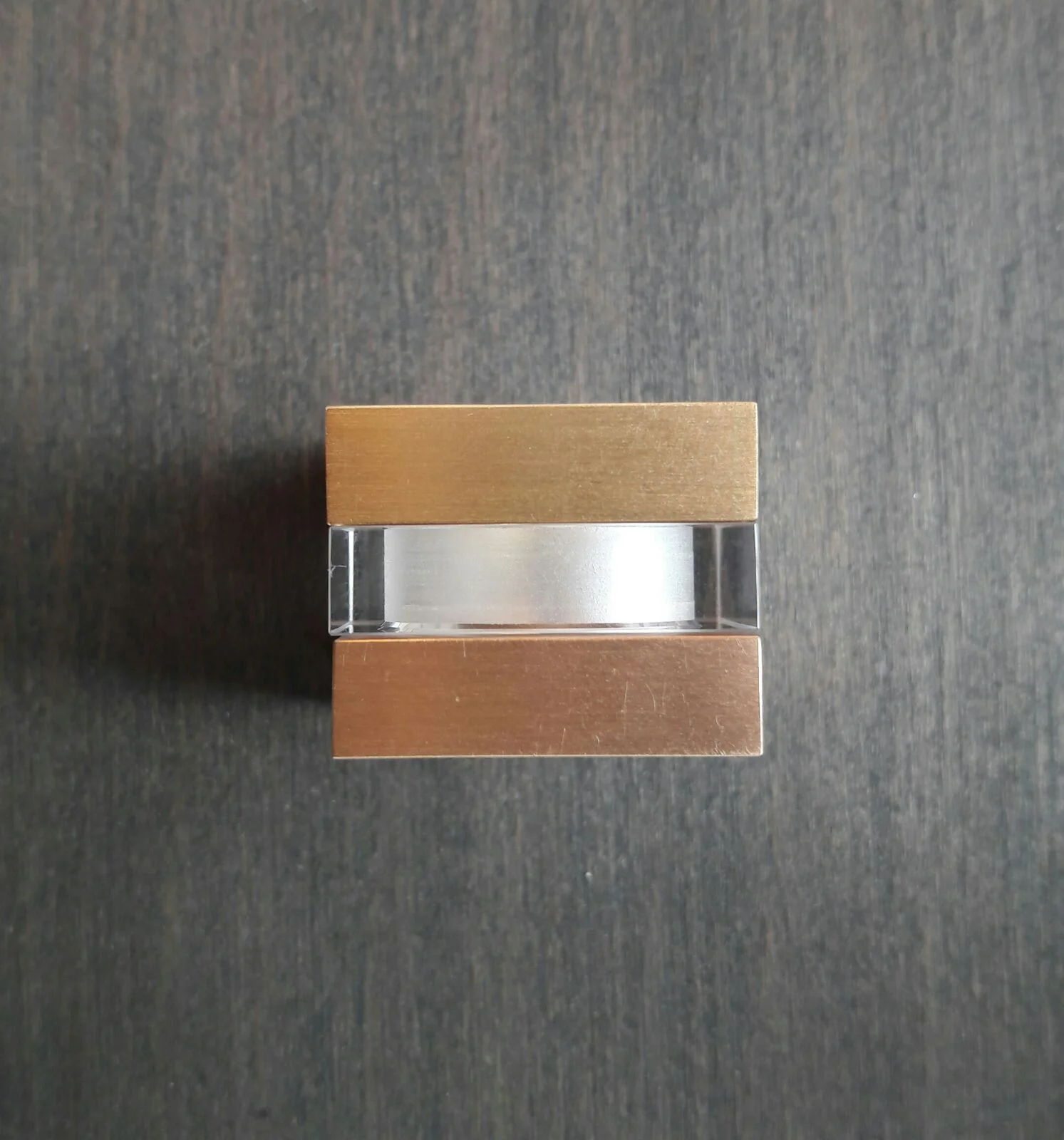 Vom Würfel 22.5 × 22.5 × 22.5mm eine Schicht oder Scheibe abgetrennt von 6.5mm Dicke mit einer Bohrung von 17.5mm oder nach Anforderung der gewünschten Ringweite ergibt einen Block von hoher stofflicher Präsenz im warmen Glanz des Goldes, oder farblicher Präsenz in anderen Materialien (Keramik, Polymer, Aramit). Lässt man in einem weiteren Arbeitavorgang nur noch einen Rahmen des blockhaften Ringes stehen, ergibt sich ein leerer Rahmen an der Hand, das Bild im Rahmen bildet dann die Haut der Träger(in). Bei Ansicht und Prüfung in der Hand, durch das Auge, lässt sich gleichermaßen ein beliebiges Bild in diesen Rahmen setzen.